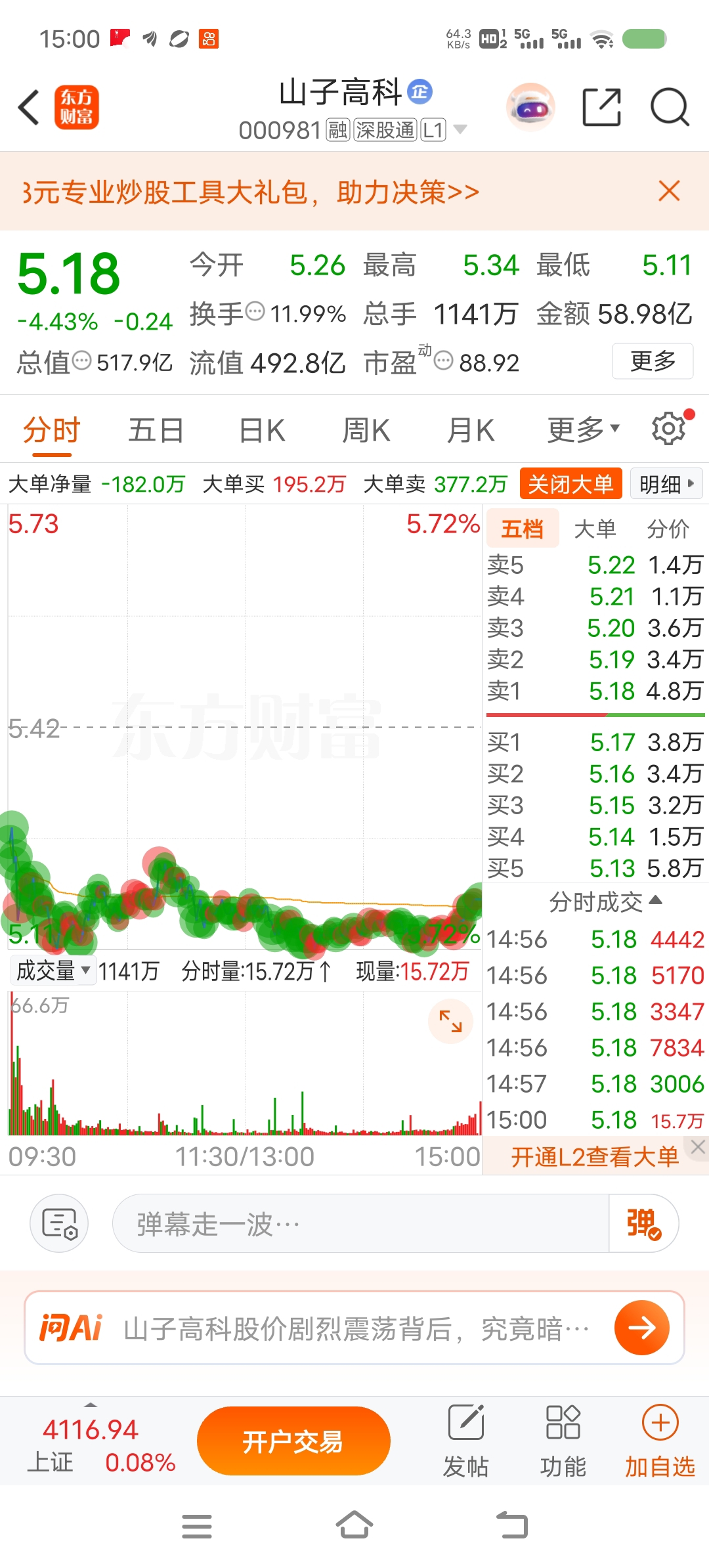 $山子高科(SZ000981)$ 今天这个价位好,别的不说,就这518--我要打来说,就喜庆!