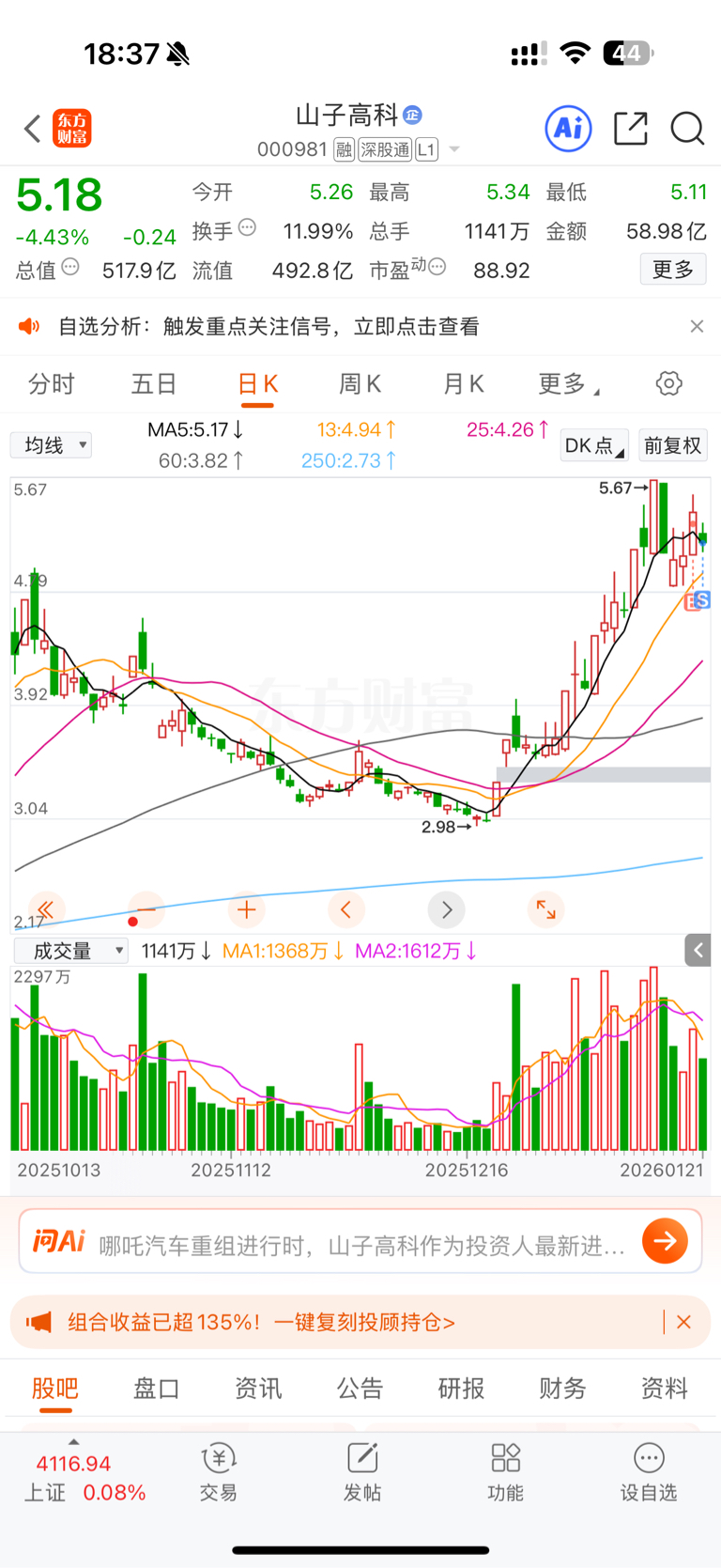 $山子高科(SZ000981)$ 跑了跑了,昨天放量不够,今天又缩量,足以判断昨天是诱多出货,后续肯定持续向下,山子这波行情结束了。