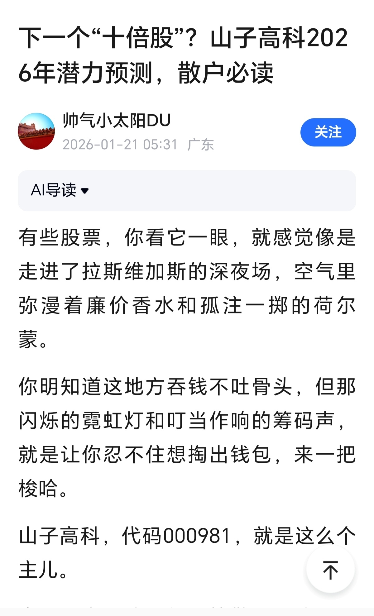 郑重声明:用户在财富号/股吧/博客等社区发表的所有信息(包括但不限于文字、视频、音频、数据及图表)仅代表个人观点,与本网站立场无关,不对您构成任何投资建议,据此操作风险自担。请勿相信代客理财、免费荐股和炒股培训等宣传内容,远离非法证券活动。请勿添加发言用户的手机号码、公众号、微博、微信及QQ等信息,谨防上当受骗!