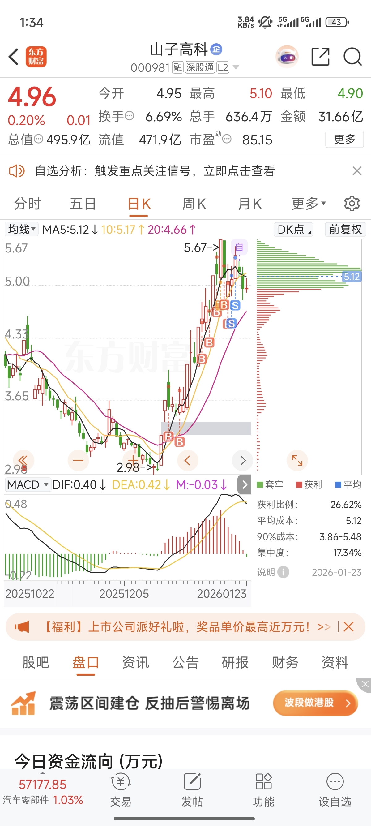$山子高科(SZ000981)$ 死叉了