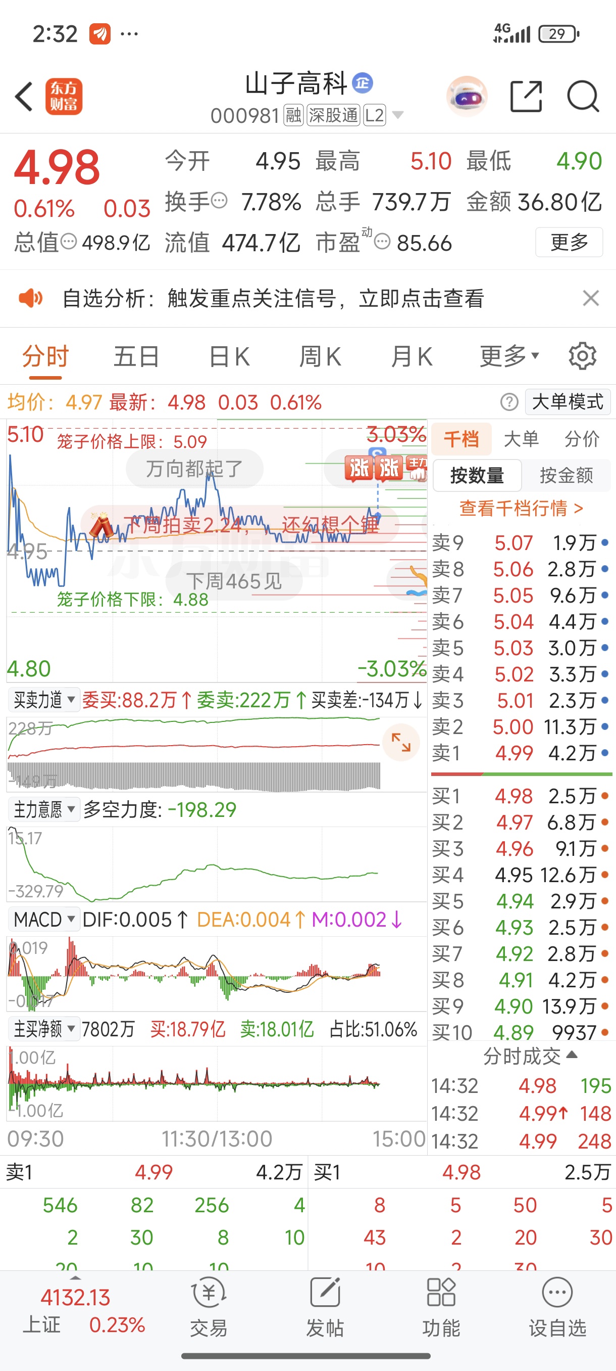 $山子高科(SZ000981)$ 今天下午卖出去了,留下兄弟姐妹们发财