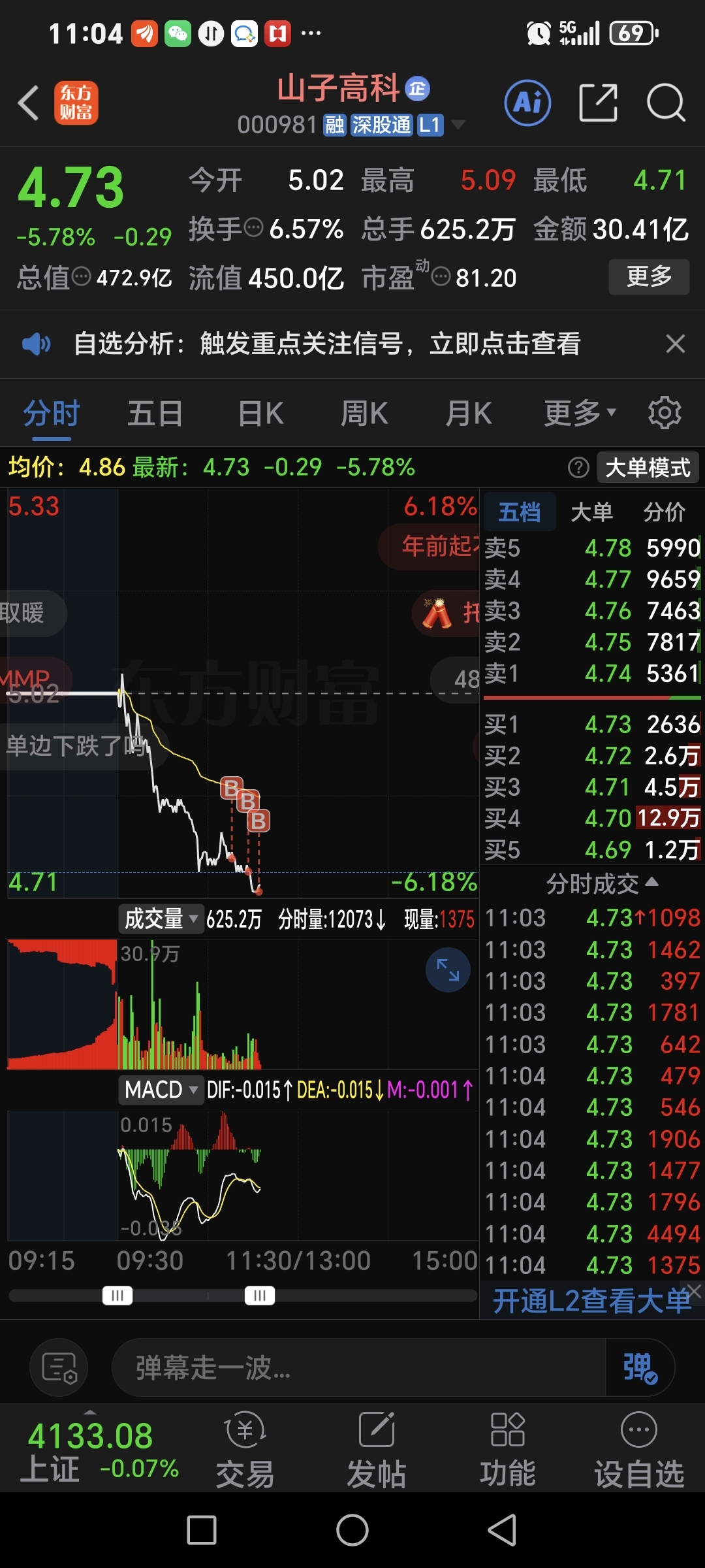 $山子高科(SZ000981)$ 今天回来了,再建仓
