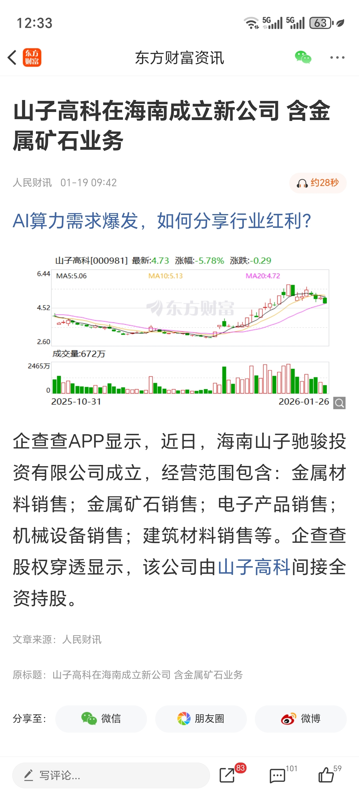 $山子高科(SZ000981)$ 山子高科海南有金矿。买入发财!