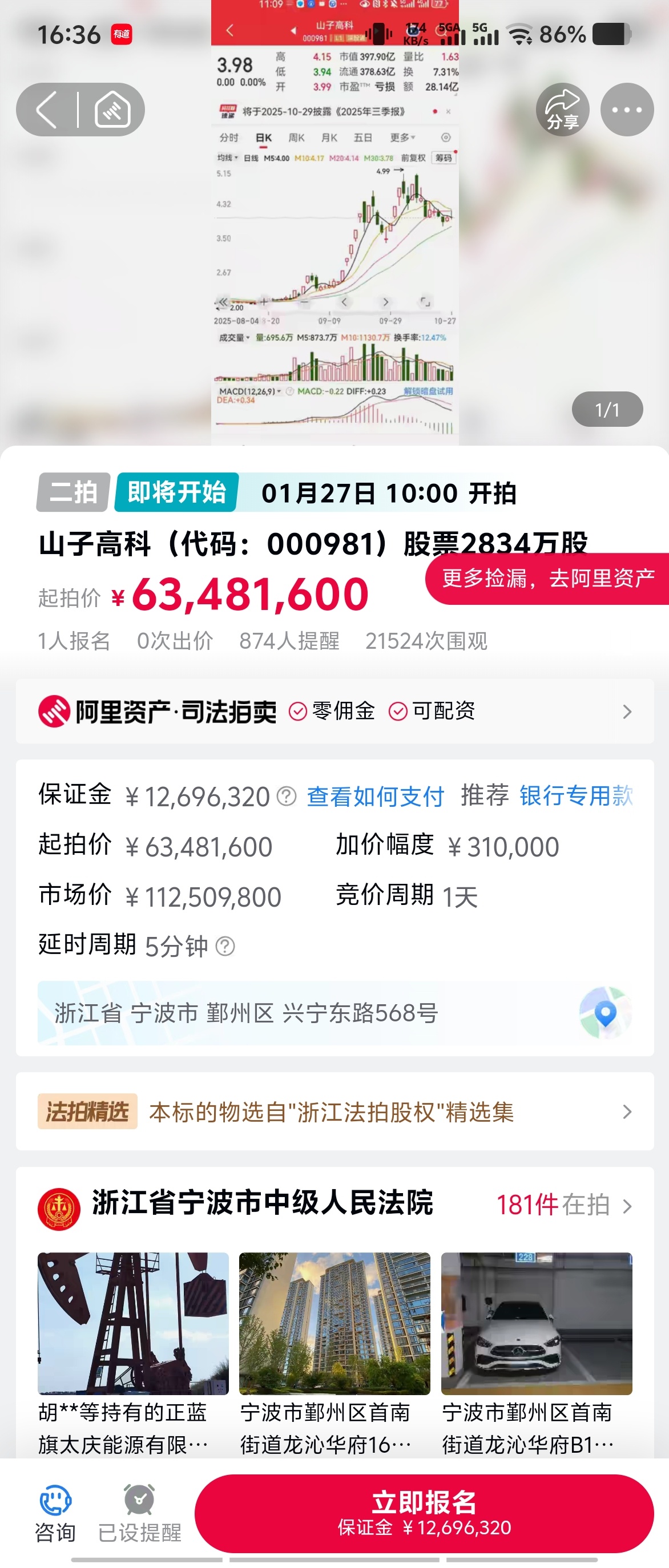$山子高科(SZ000981)$ 27号的标有人报名了,还有说2块几的是没经历过上次拍卖吗,不知道开拍前会根据近期成交均价调整起拍价吗。