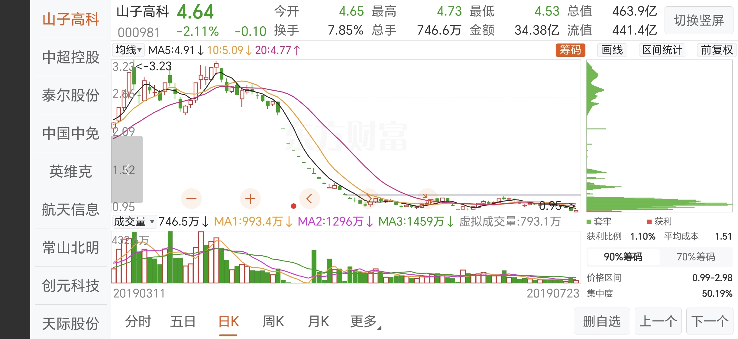 $山子高科(SZ000981)$ 回看以往走势,才发现这只票异常的凶险。涨起来没力但跌起来异常的猛,最近的走势跟之前要大跌的走势太像了,在车上的各位保重。