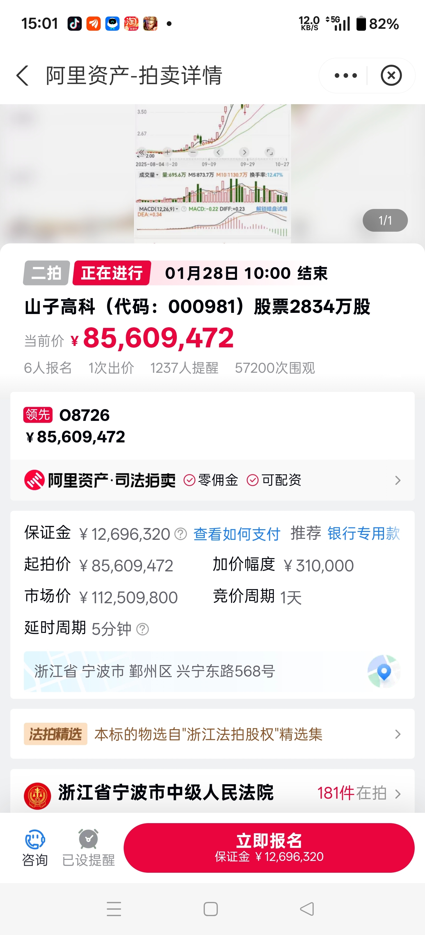 $山子高科(SZ000981)$ 有人出价了,要是阿里买的,明天有望涨了