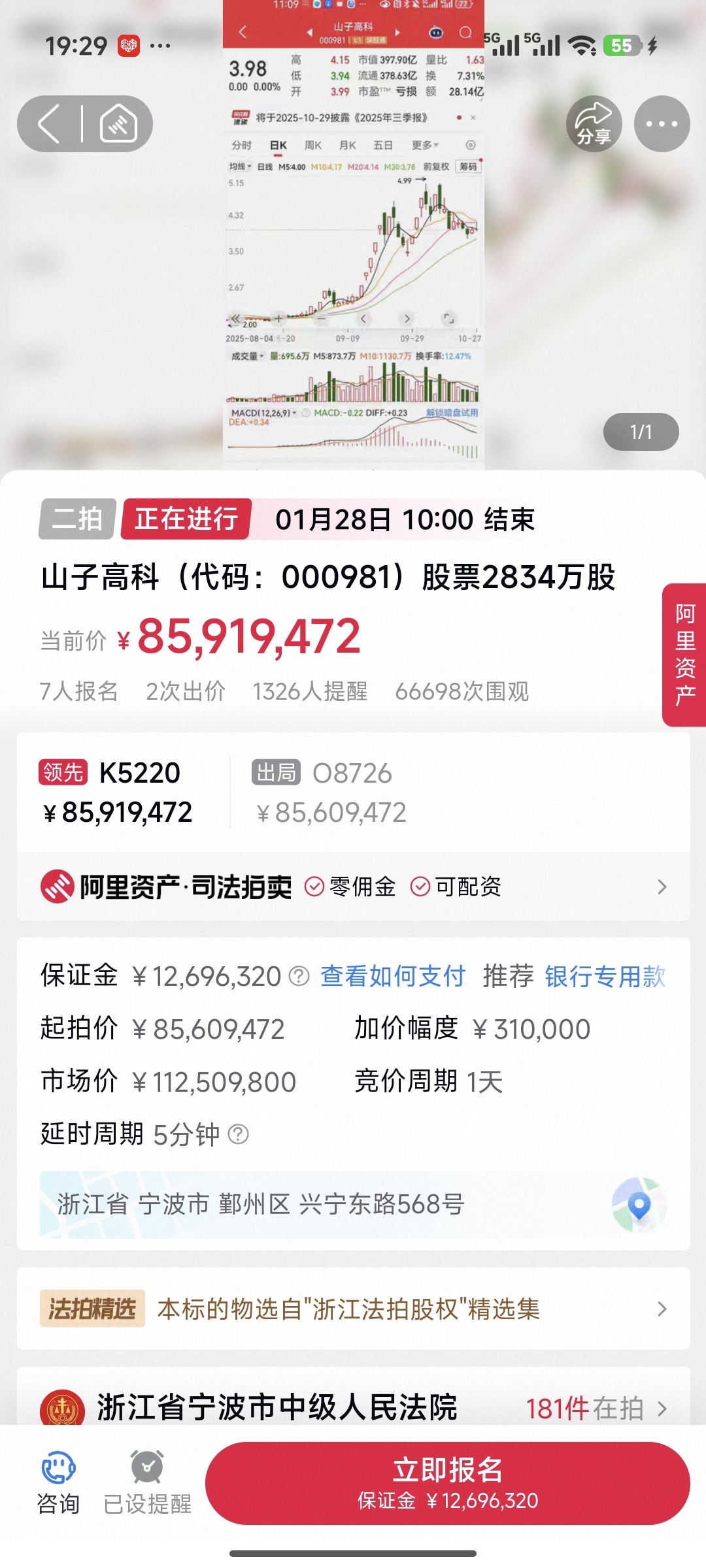 $山子高科(SZ000981)$ 有人竞价了,加了31万