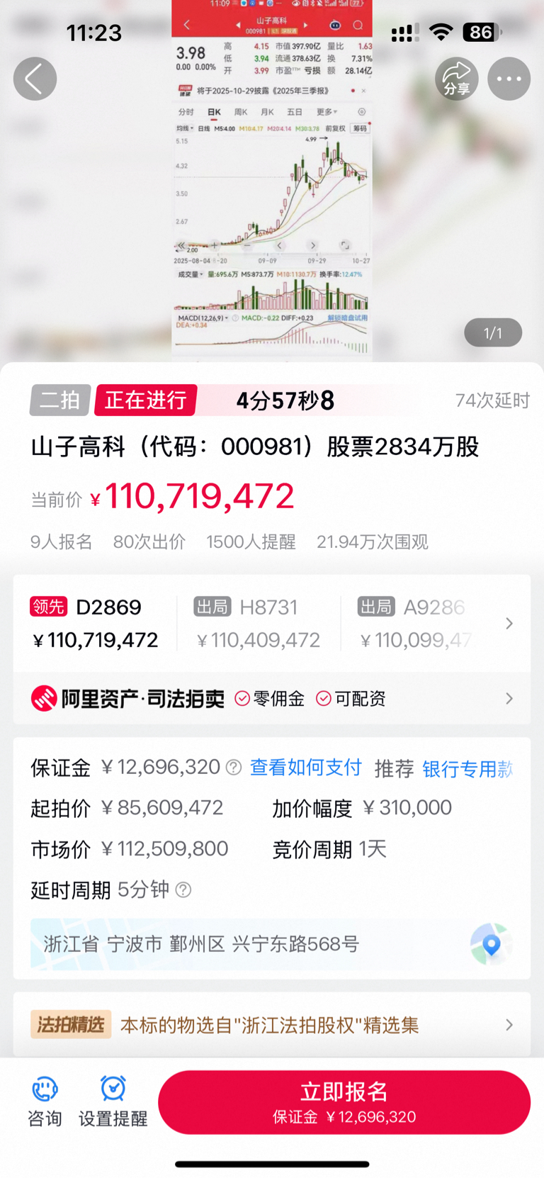 山子高科上午收盘前最后上车机会。中午法拍持续拉高。下午开盘山子高科直接拉涨停~