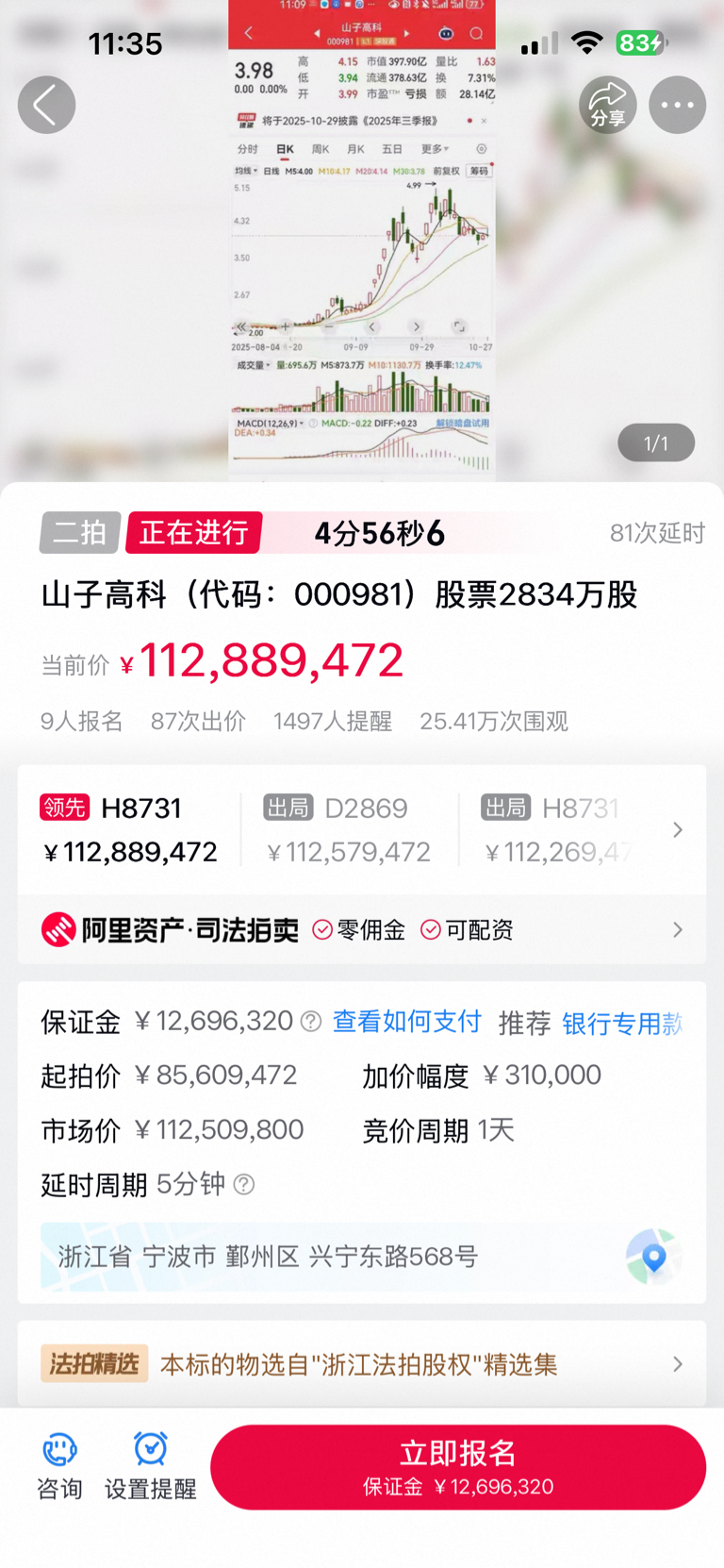 $山子高科(SZ000981)$ 11.35分最新情况,竞拍已经超越标注市场价!看这情况30号那个大笔的拍卖估计也不会低