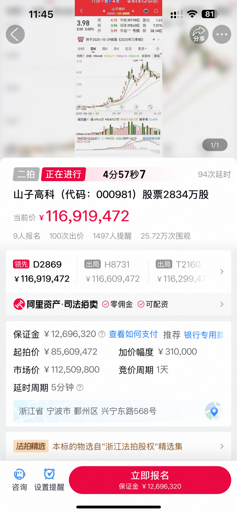 100次出价了,下午开盘就直接封死涨停了,买不到咯。恭喜已上车的同志,车门焊死咯
