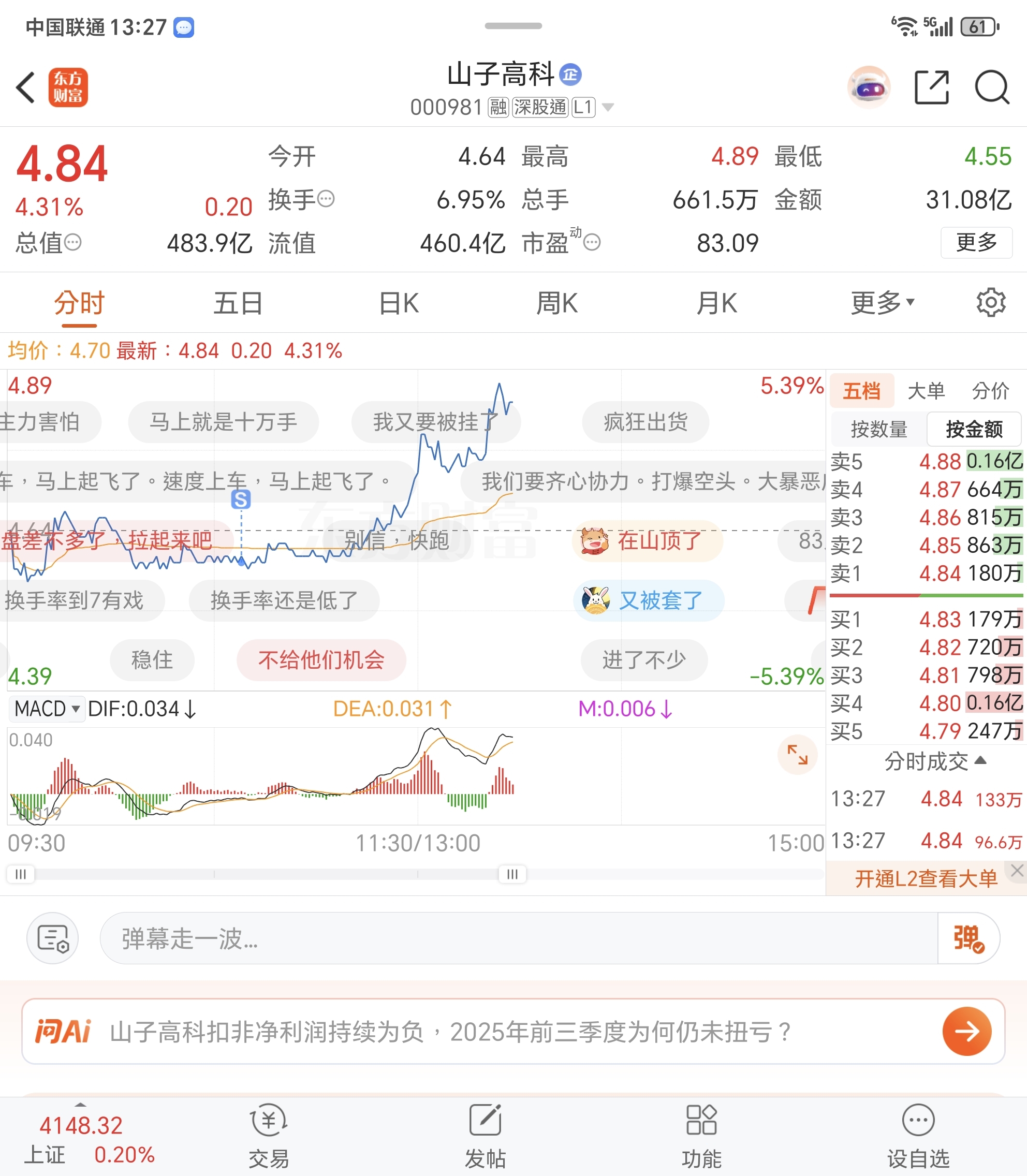 $山子高科(SZ000981)$ 奶奶的,就差我这点?