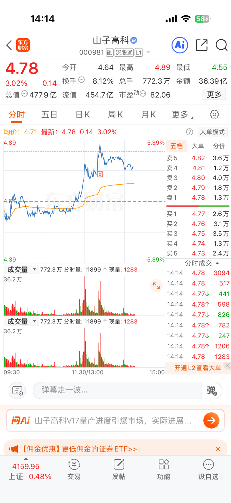 $山子高科(SZ000981)$ 挂在山顶了嘛