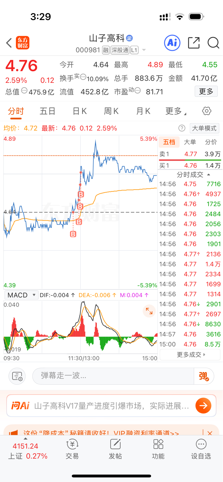 $山子高科(SZ000981)$ 不知道明天如何啊,我怕吃面