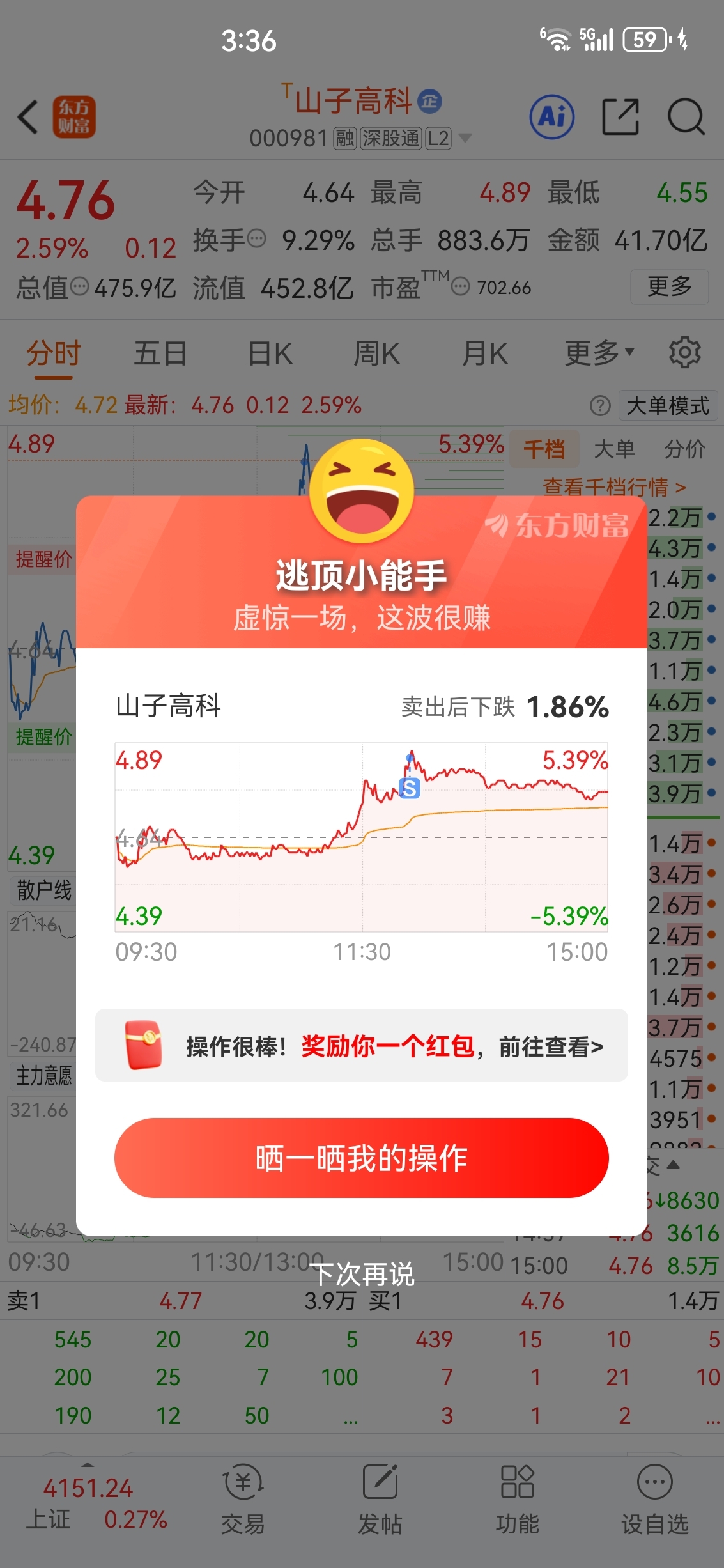 $山子高科(SZ000981)$ 明天4.58-4.92