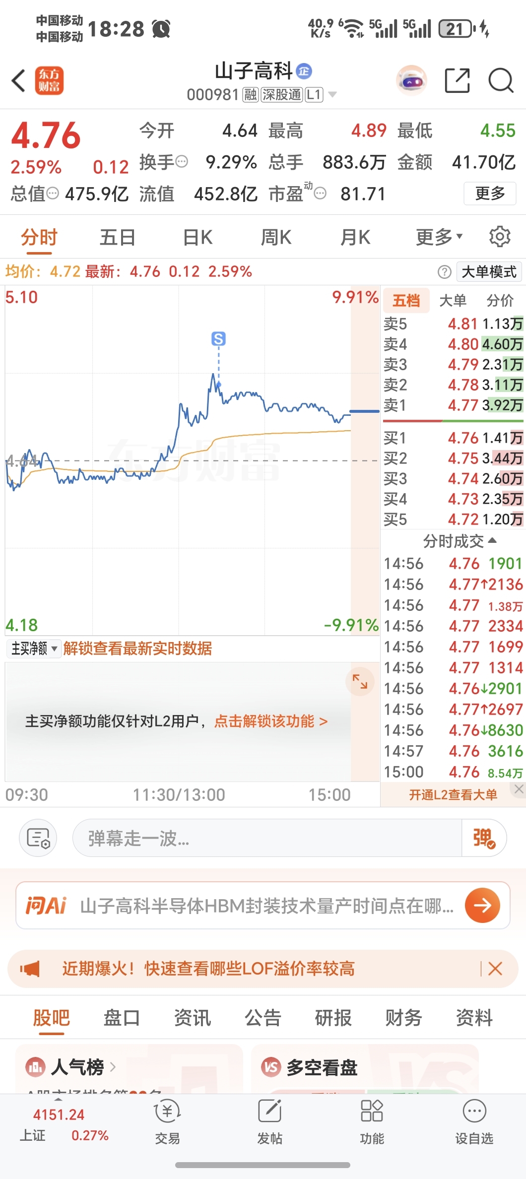$山子高科(SZ000981)$ 轻轻的我走了,正如我轻轻地来!