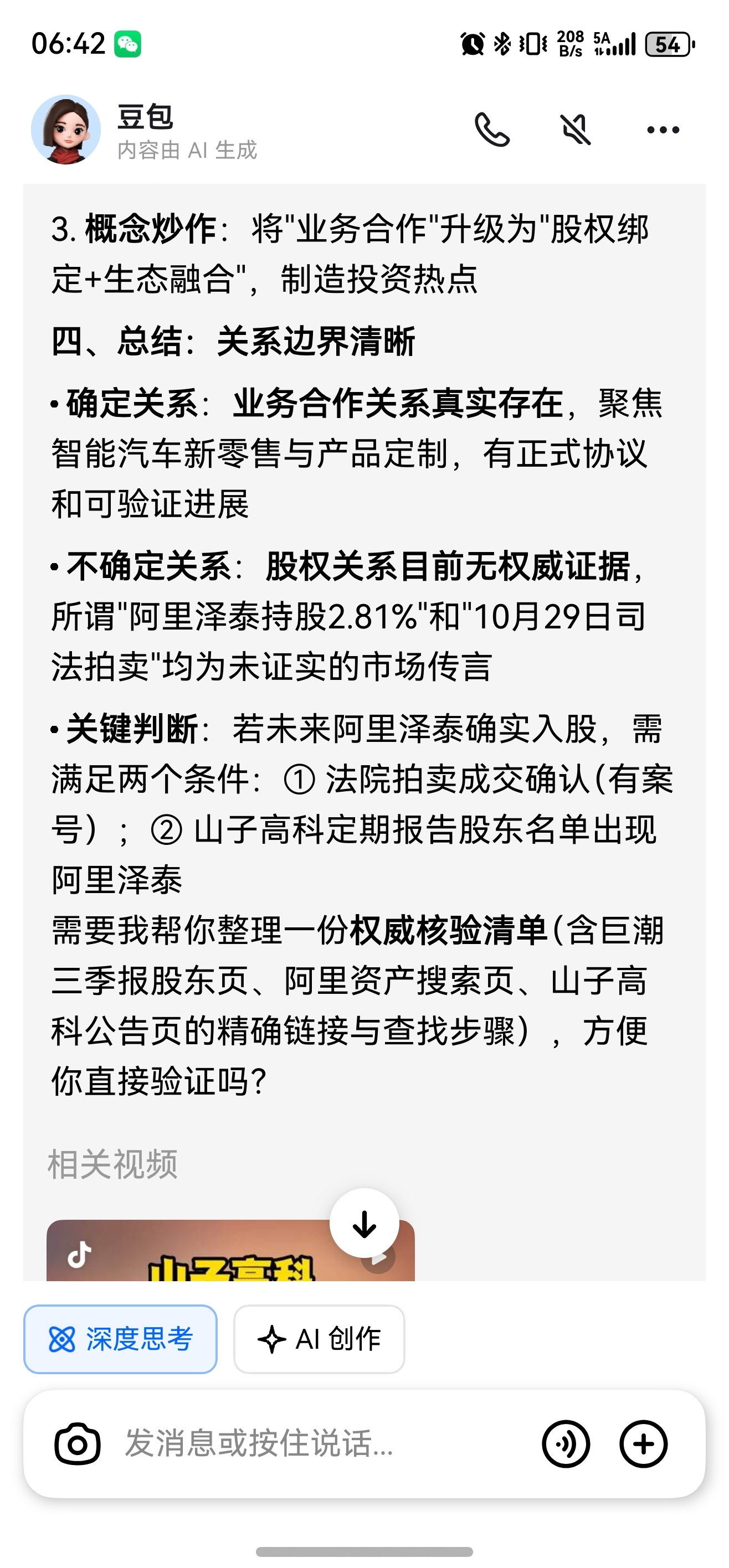 喜欢用豆包,用ai的托,你但凡质疑她一下,她马上就改口了。什么信息都要自己去调查