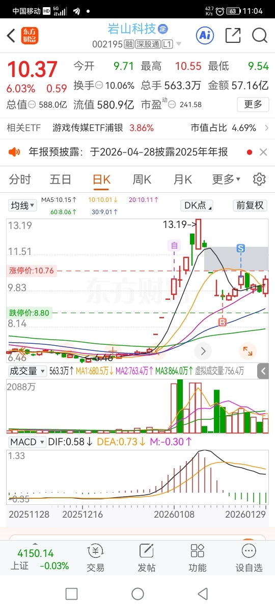 山子太水了,人家股票都是开始龙回头第二春,你倒好,老了走下坡路,做短线岩山和利欧