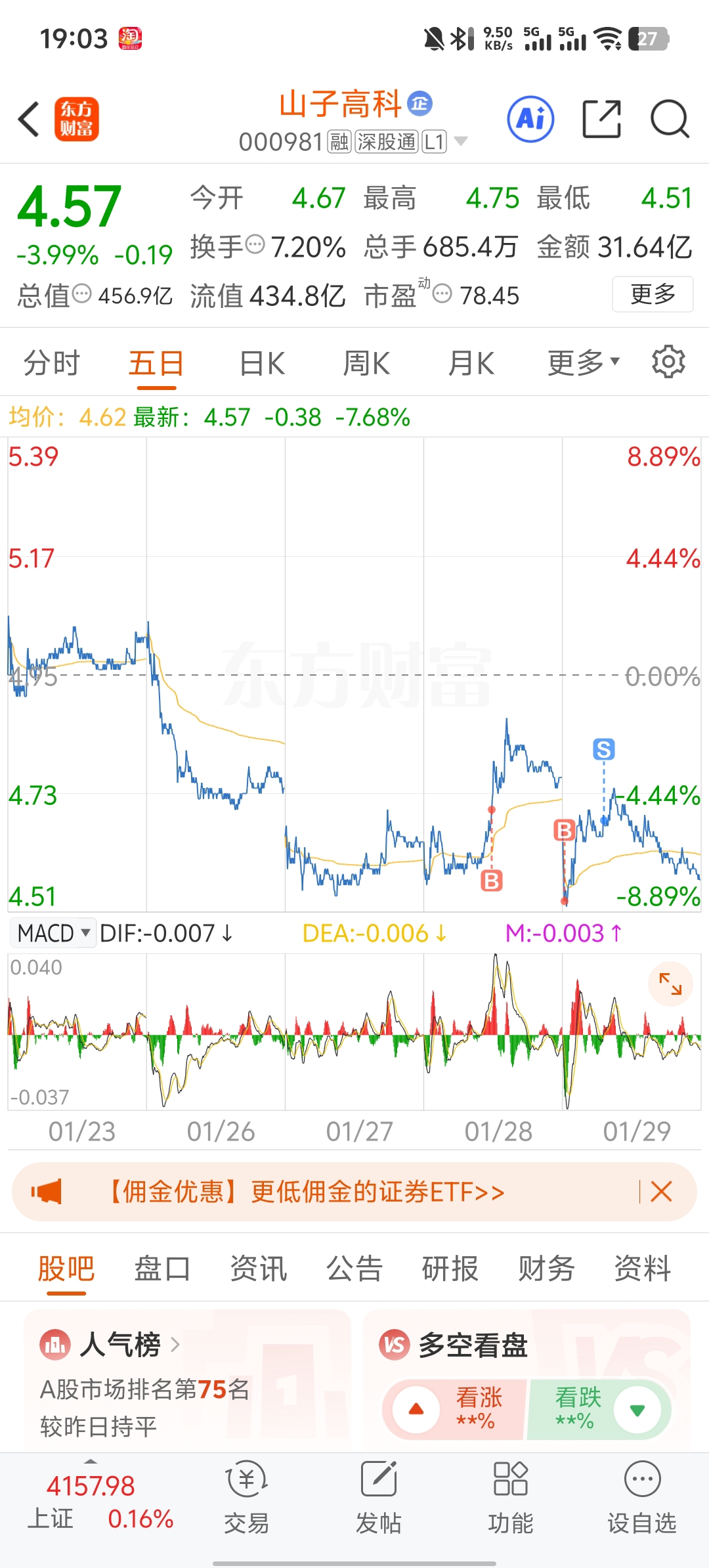 $山子高科(SZ000981)$ 做个t成功把成本拉低,今天赚0.3个点