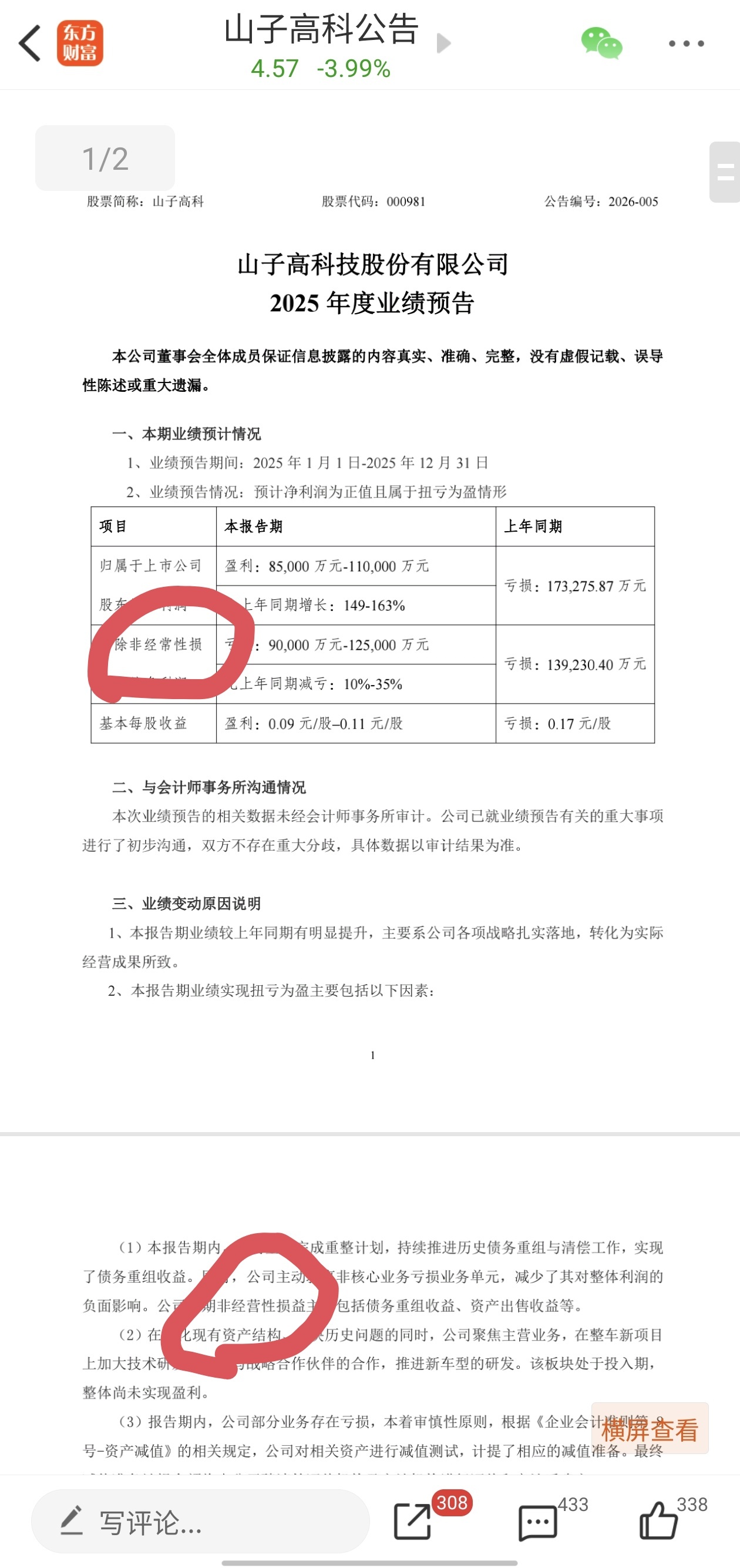 $山子高科(SZ000981)$ 公告都有错别字,我真的服了。非经营性写成了非经常性!