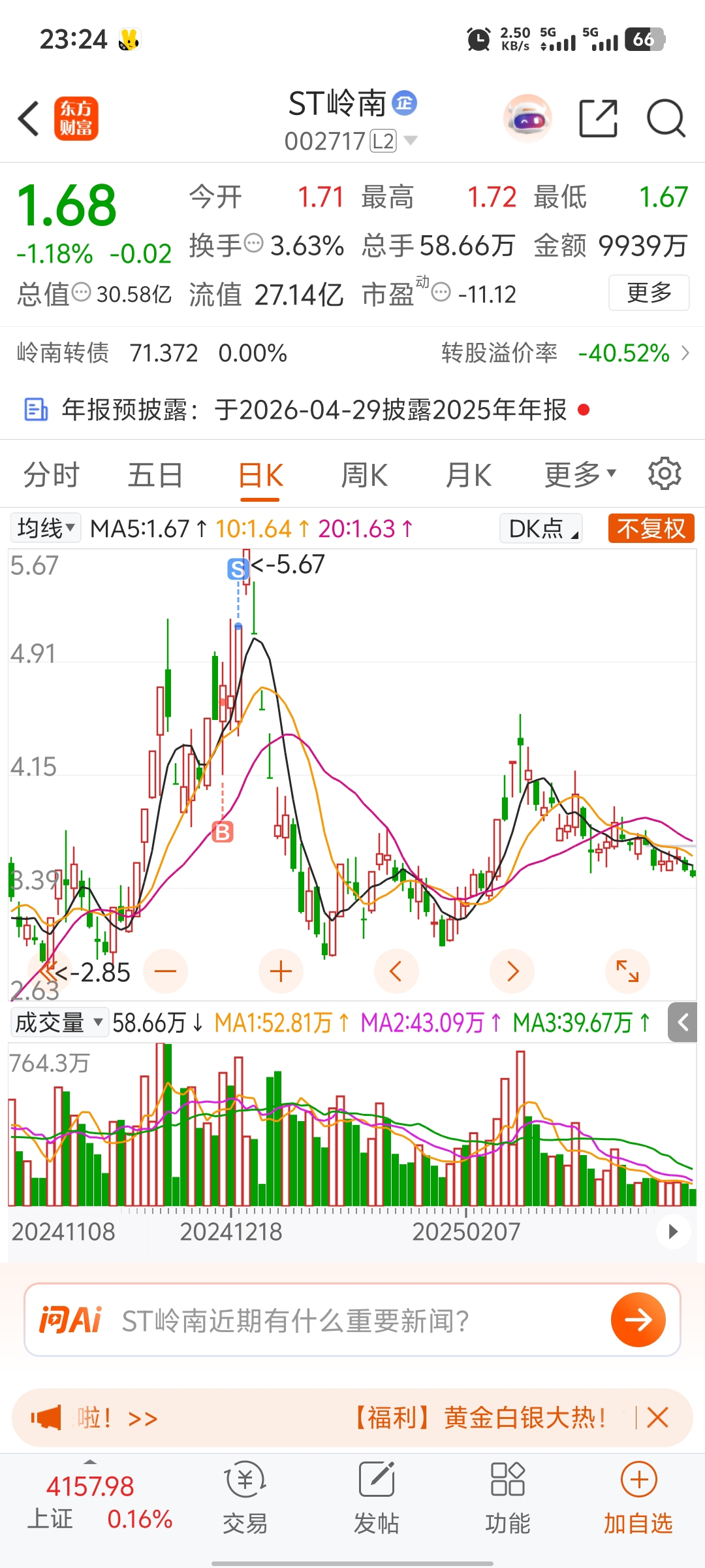 $山子高科(SZ000981)$ 历史总是那么惊人的相似都是5.67山子不会和岭南一样吧?