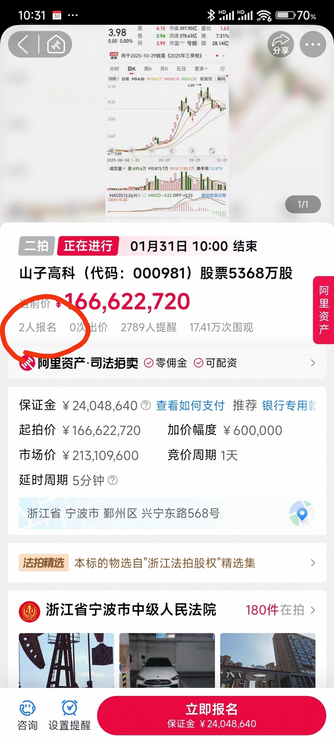 $山子高科(SZ000981)$ 法拍有二人报名了