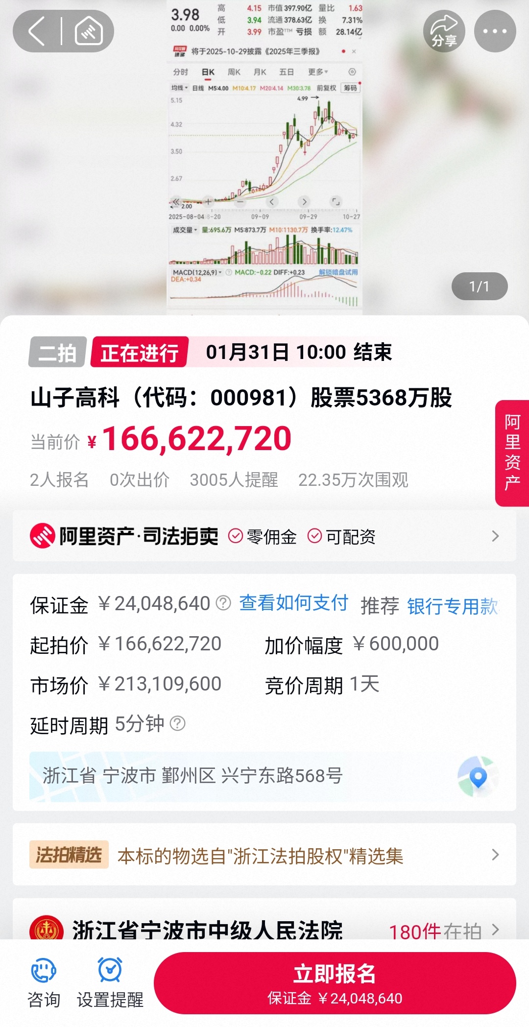 $山子高科(SZ000981)$ 两个报名了要溢价了