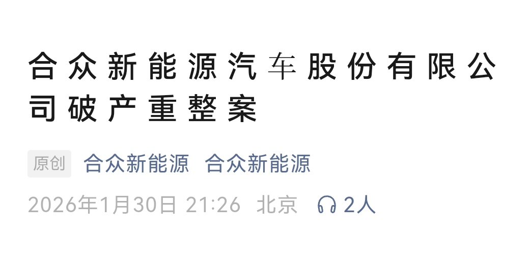 昨天晚上九点半,合众新能源发布的公告,法院公示到2月6日,然后法院裁定重整结果。
