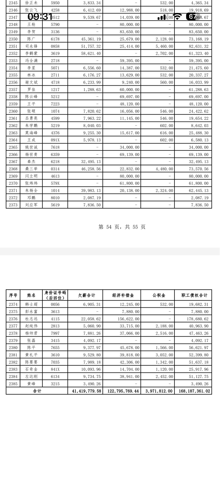 职工债权公示