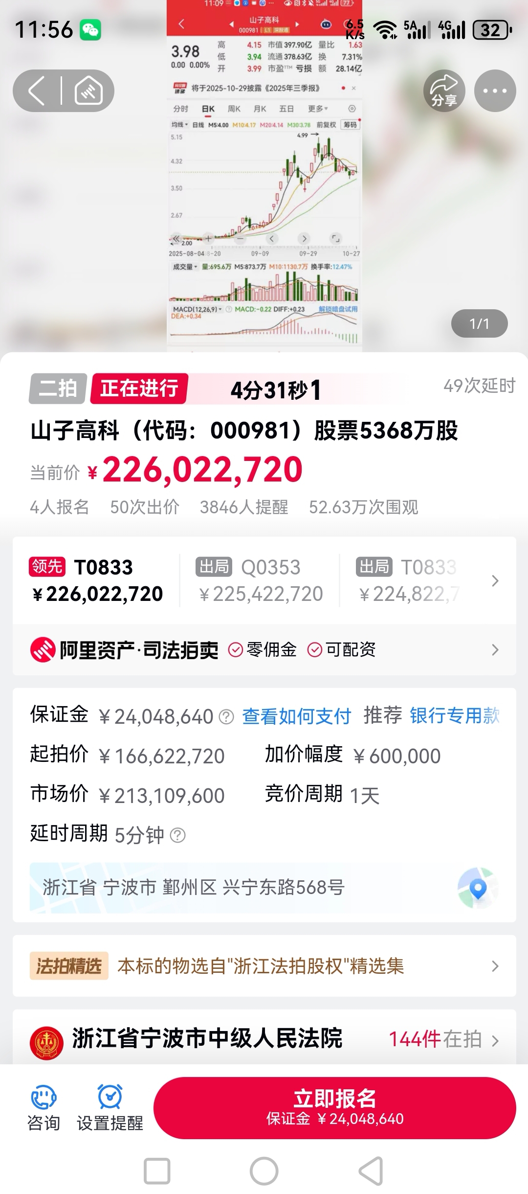 $山子高科(SZ000981)$ 拍卖49次延时,老激烈了