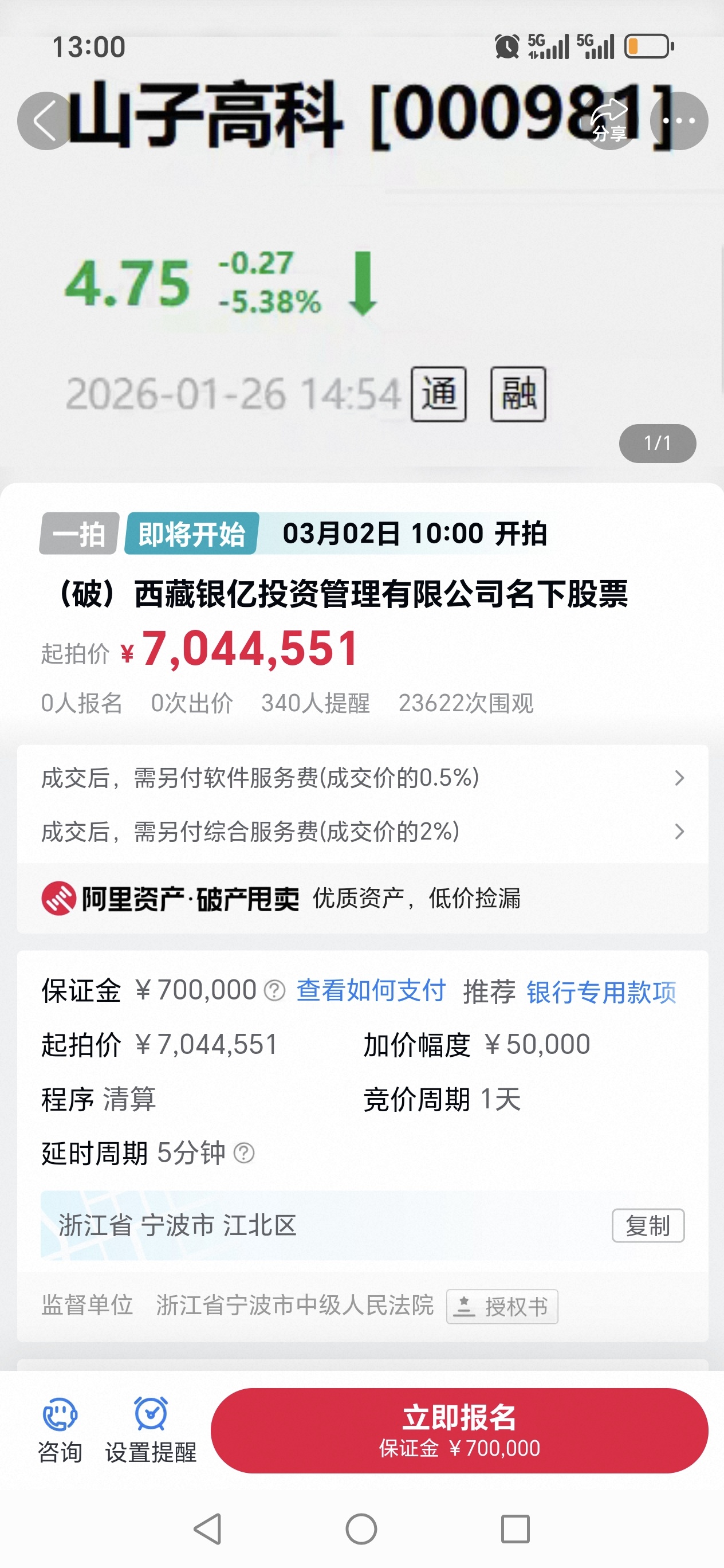 山子高科3月2日阿里司法拍卖