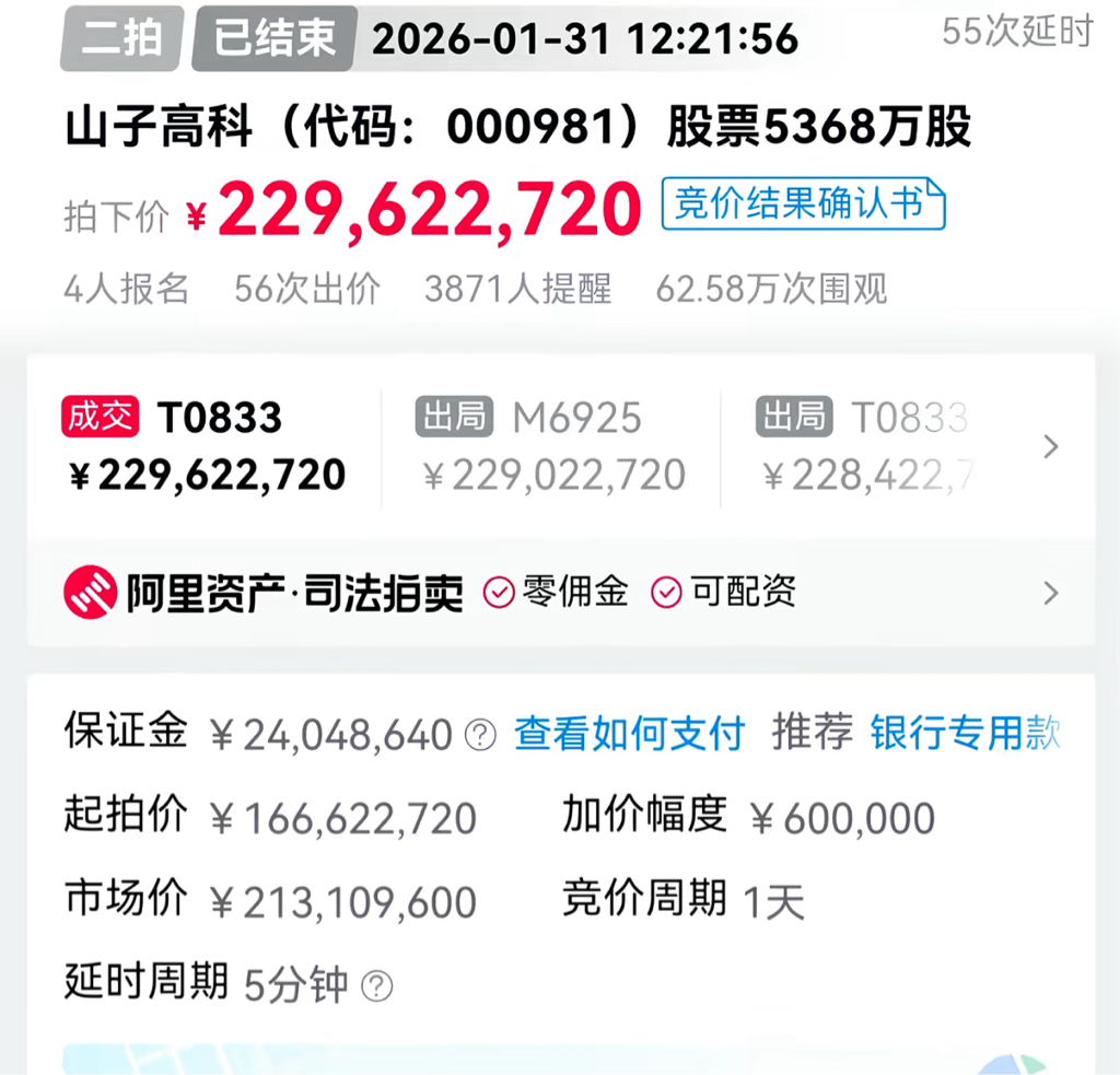 $山子高科(SZ000981)$ 半年贷款利率4.35%×2.29=0.099615亿,印花税,拍卖佣金,股票交割费,人工费算0.05亿,总费用算下来0.15亿左右。5368万股,合每股1500/5368=0.28元,4.28+0.28=4.66(元月的收盘价),这是巧合吗?意味着什么?大神们怎么看?