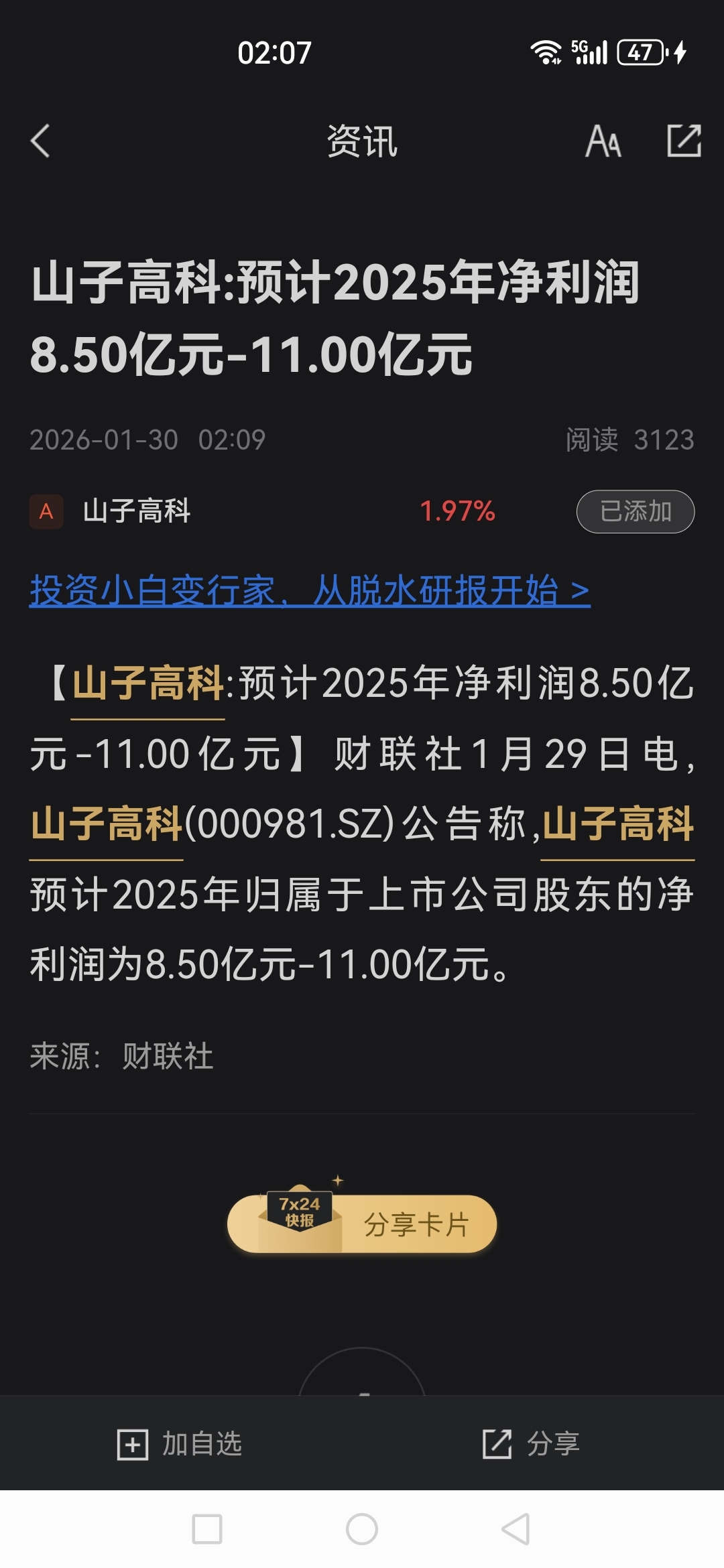 $山子高科(SZ000981)$ 明天肯定涨
