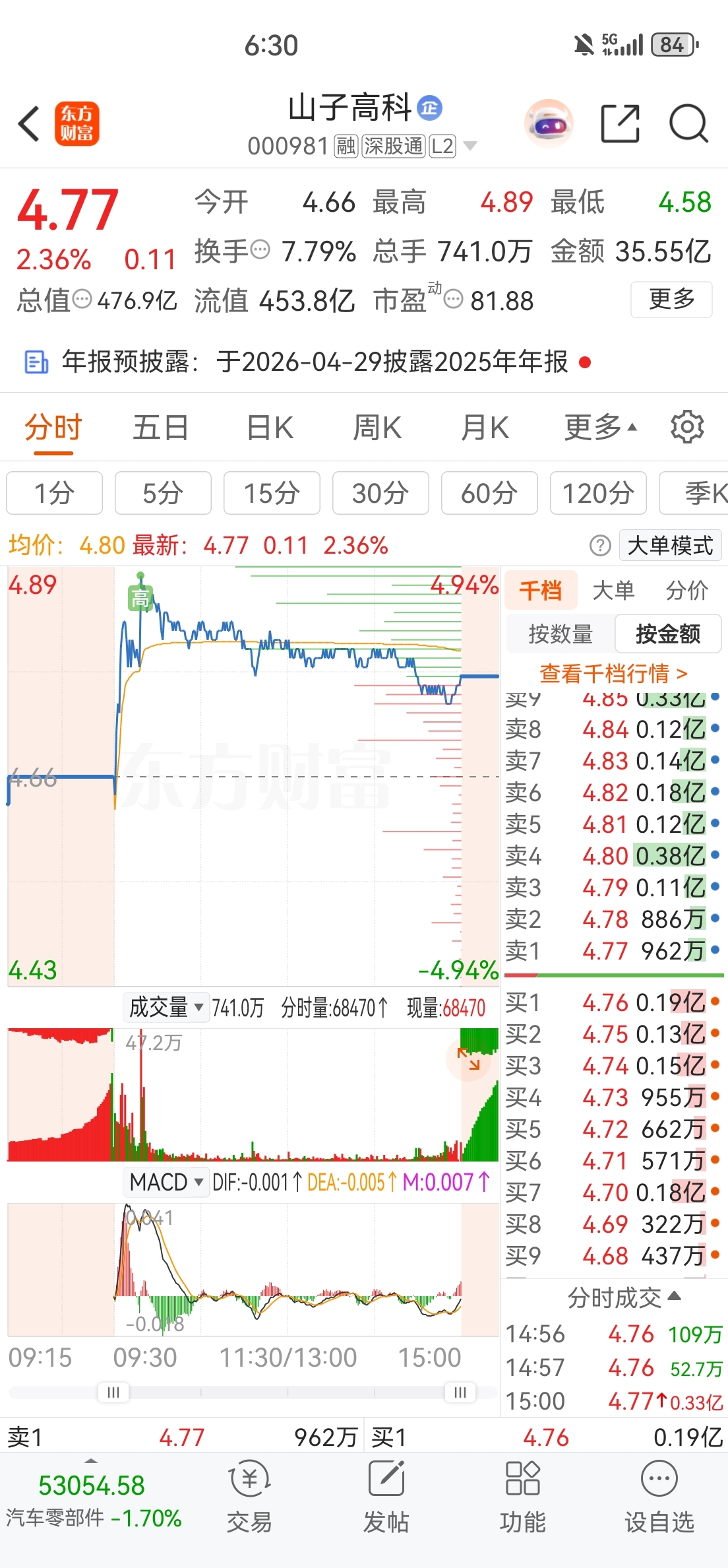 $山子高科(SZ000981)$ 今天账户全靠你和来伊份才红着