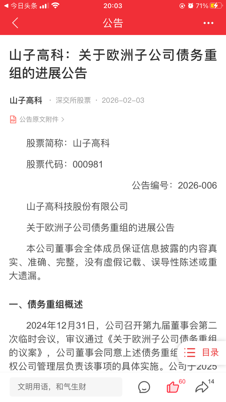 $山子高科(SZ000981)$