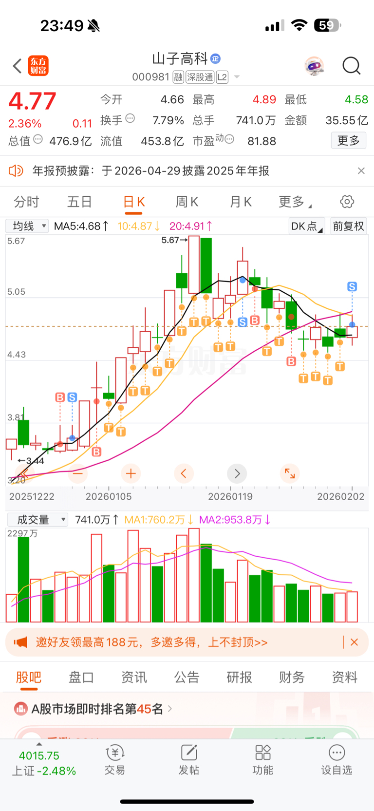 $山子高科(SZ000981)$ 今天清仓,感觉踏空了,明天又要高位接回来了