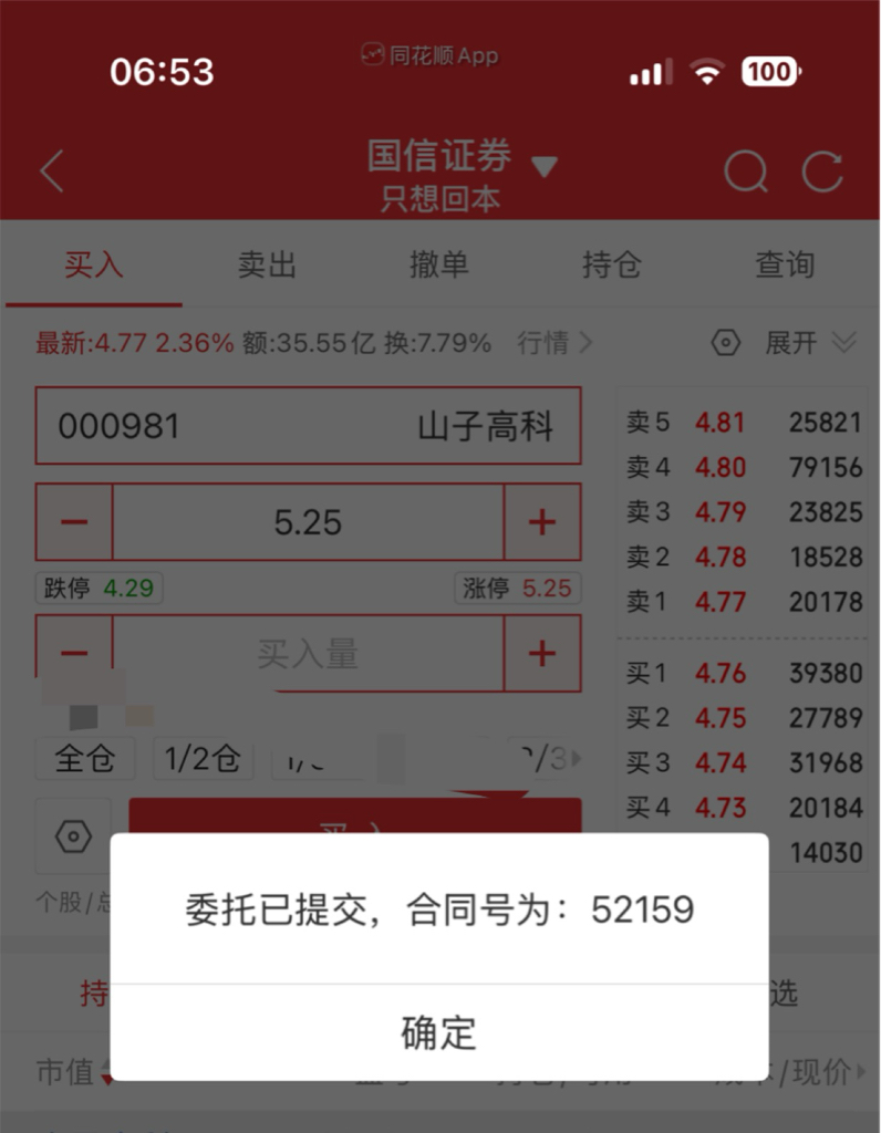 $山子高科(SZ000981)$ 买入号52159排队