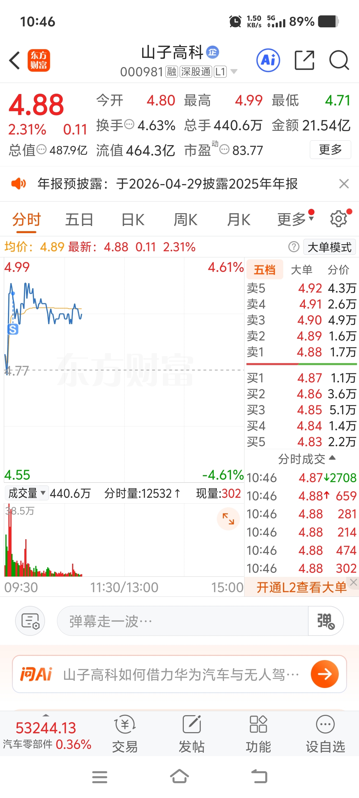 $山子高科(SZ000981)$ 一夜持股法,吃个快餐,山子顶20日线过不去的,等回调吧