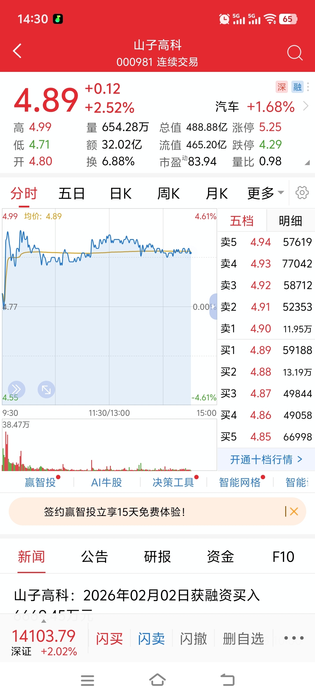 $山子高科(SZ000981)$