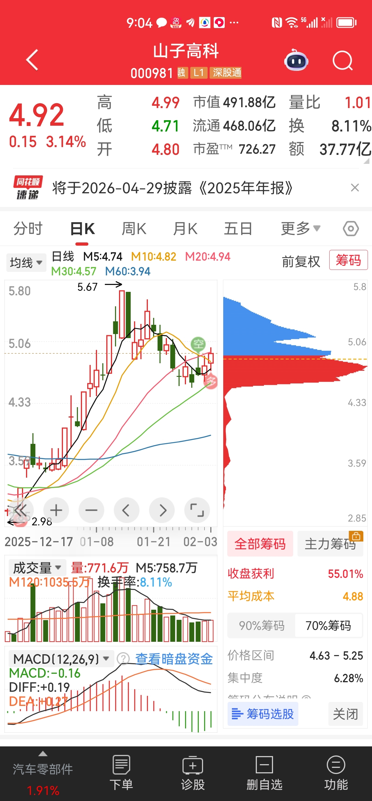$山子高科(SZ000981)$ 已经处于多头行情,明天涨停,拿好等吃肉