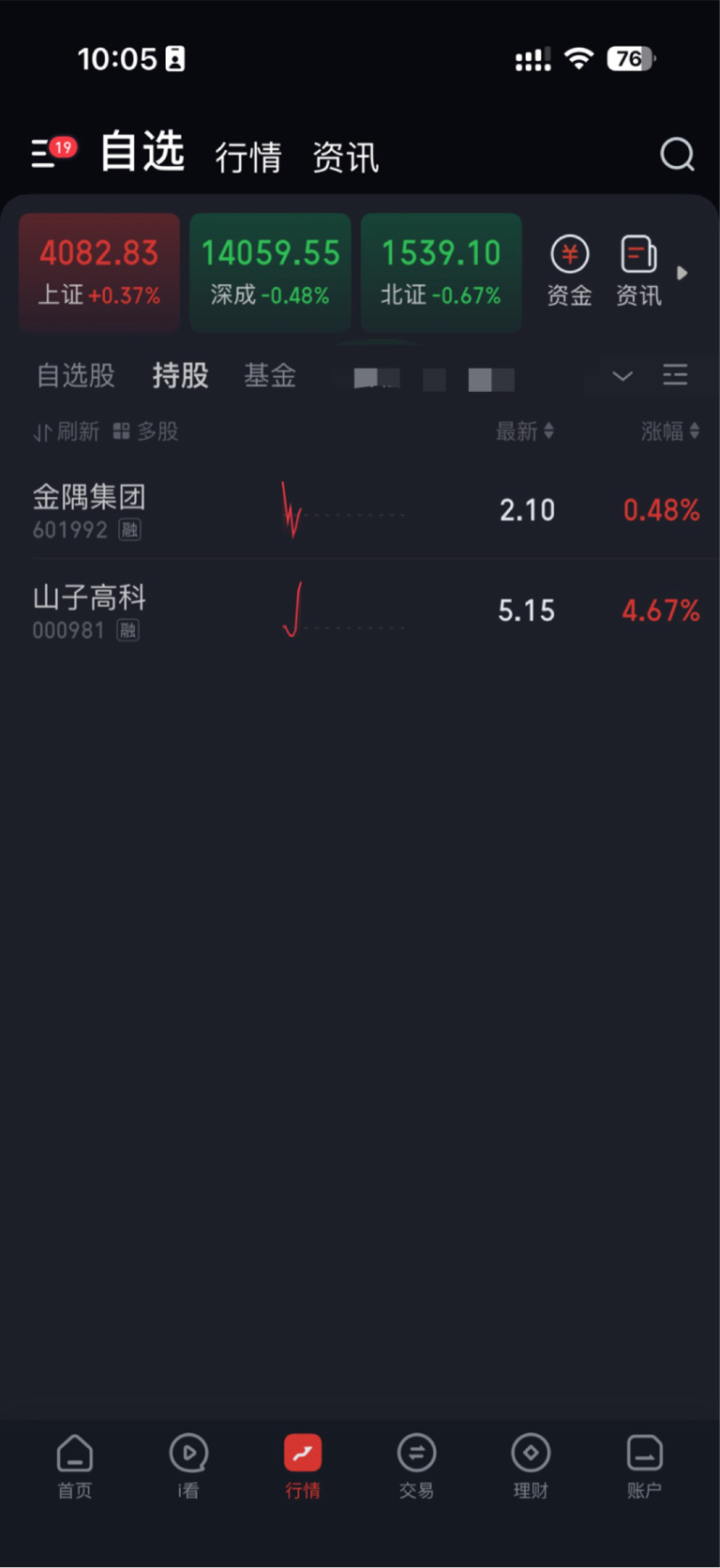 #炒股日记# $山子高科(SZ000981)$ $金隅集团(SH601992)$ 手里仅有的两个票!昨天金隅今天山子!