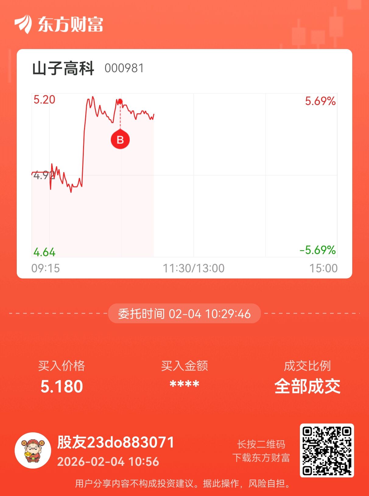 温馨提示: 1.根据《证券法》规定,禁止编造、传播虚假信息或者误导性信息,扰乱证券市场;2.用户在本社区发表的所有资料、言论等仅代表个人观点,与本网站立场无关,不对您构成任何投资建议。用户应基于自己的独立判断,自行决定证券投资并承担相应风险。《东方财富社区管理规定》