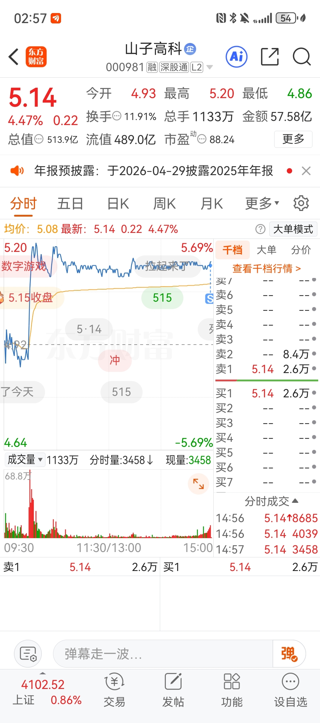 $山子高科(SZ000981)$ 尾盘清了半仓,虽然不舍但是不能贪了
