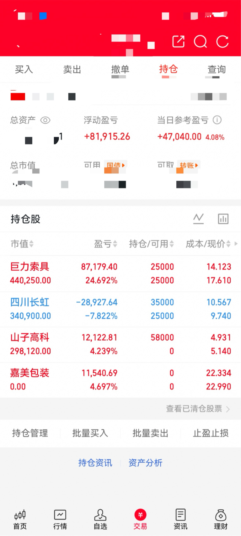 今日大盘高开高涨,趋势一定要好好把握,科技板块基本都是下跌趋势,老红今天也是先把嘉美包装下车了,早上跟进了山子高科,下午继续加了四川长虹降低成本。