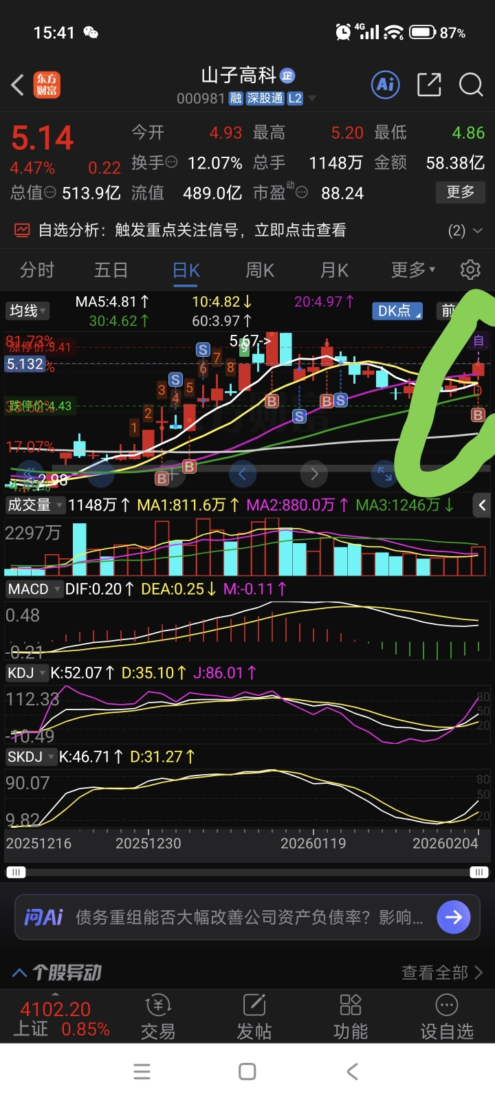 $山子高科(SZ000981)$ 能看懂我这个K线有个“自”的字,就应该明天的走势了。