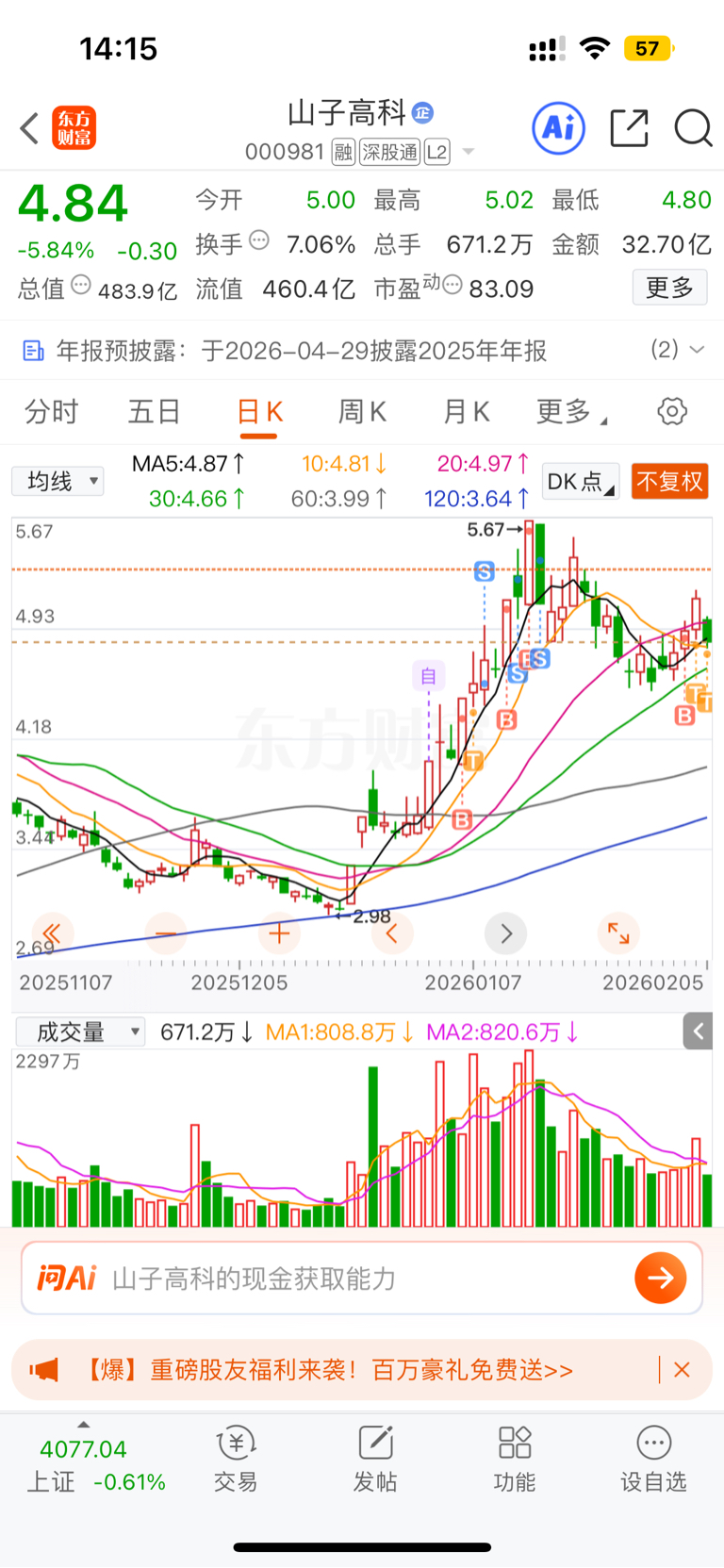 $山子高科(SZ000981)$ 吗的昨天5.18卖了 加仓干了,今天一天把我这个月利润全跌回去了 算你狠