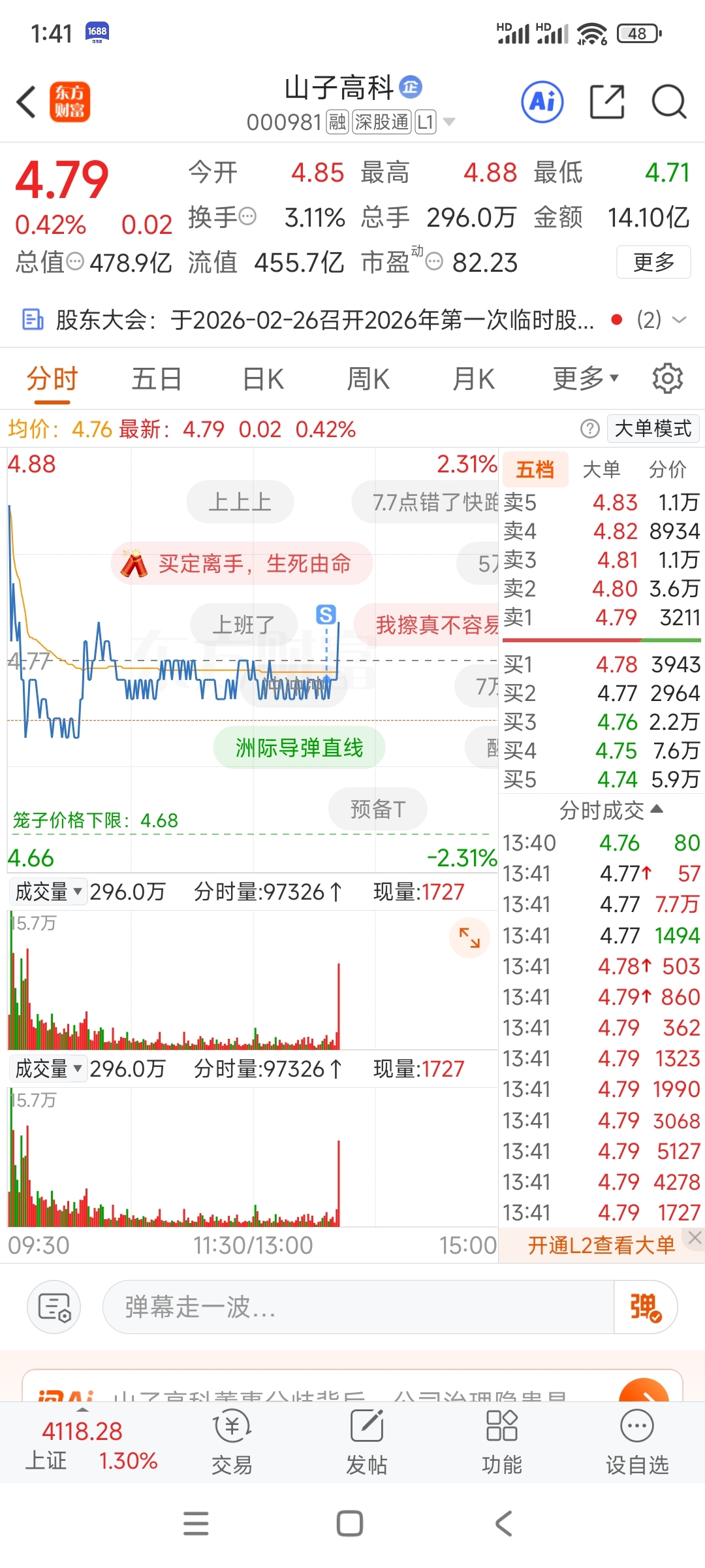 $山子高科(SZ000981)$ 服了不走不涨啊
