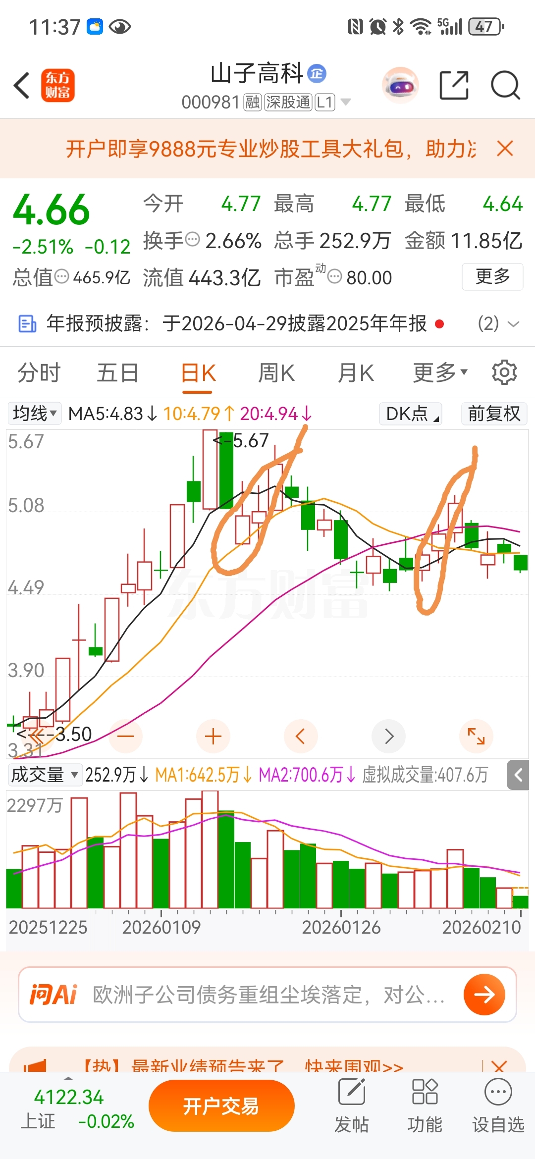 $山子高科(SZ000981)$ 原来想节前能不能控在5块钱附近,这k线图不得不信啊。看来节前会在最低一点了,4.4上下。恶心了兄弟们过年了。