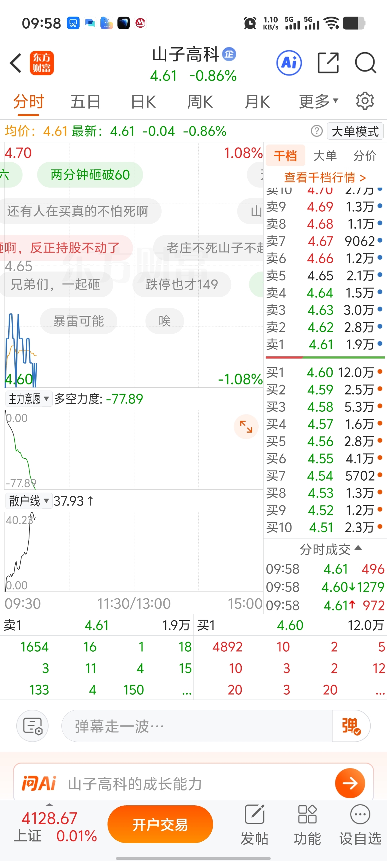 $山子高科(SZ000981)$ 买盘有机构