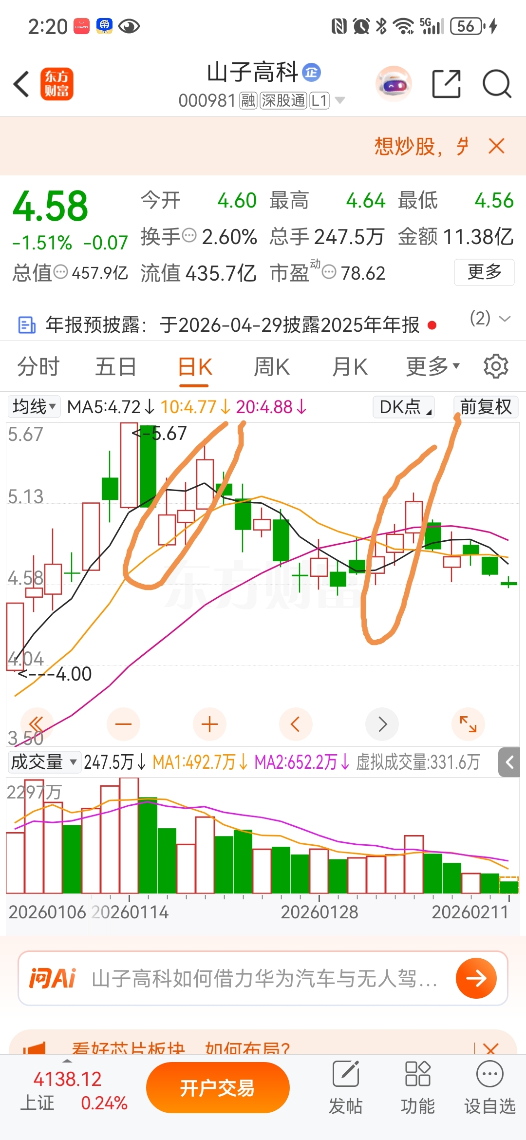 $山子高科(SZ000981)$ 还得跌两天,后天操底,可搏一个反弹。