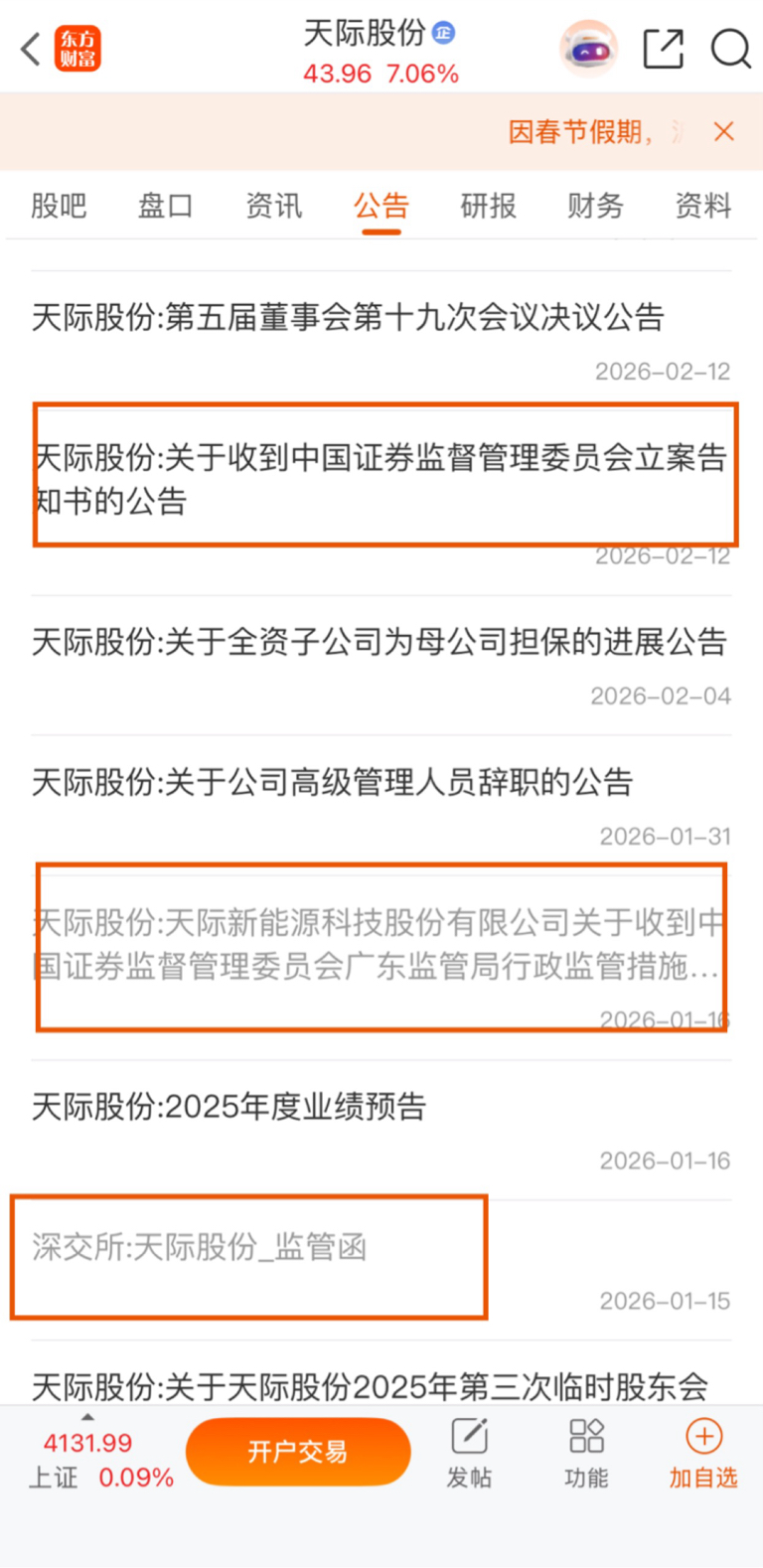 要小心,天际股份今晚立案了,山子高克去年10月底收到了警示函,提到业绩虚假记载加